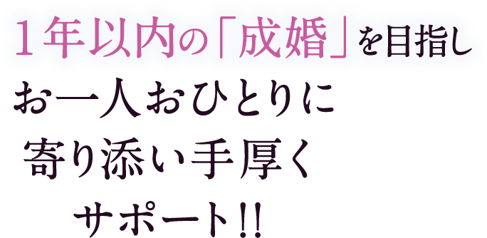 会員の皆様はシステムを利用して全国の会員データからお相手を自由に検索していただくことやAIによるデータマッチングが可能です。さらに、人生経験豊富なカウンセラーが会員様のプロフィールを一人一人しっかりと把握し、データには表れないあなたの雰囲気や価値観に合わせたご紹介も行います。「仕事が忙しくてお見合いの時間を作るのが難しい……」という方もご安心ください。対面のお見合いだけでなく、オンラインお見合いも選択できます。お住まいが遠方やお時間の調整が難しいお相手とも、すきま時間を利用してお見合いすることが可能。出逢いの可能性が広がる最新のシステムをぜひ一度ご体験ください!